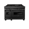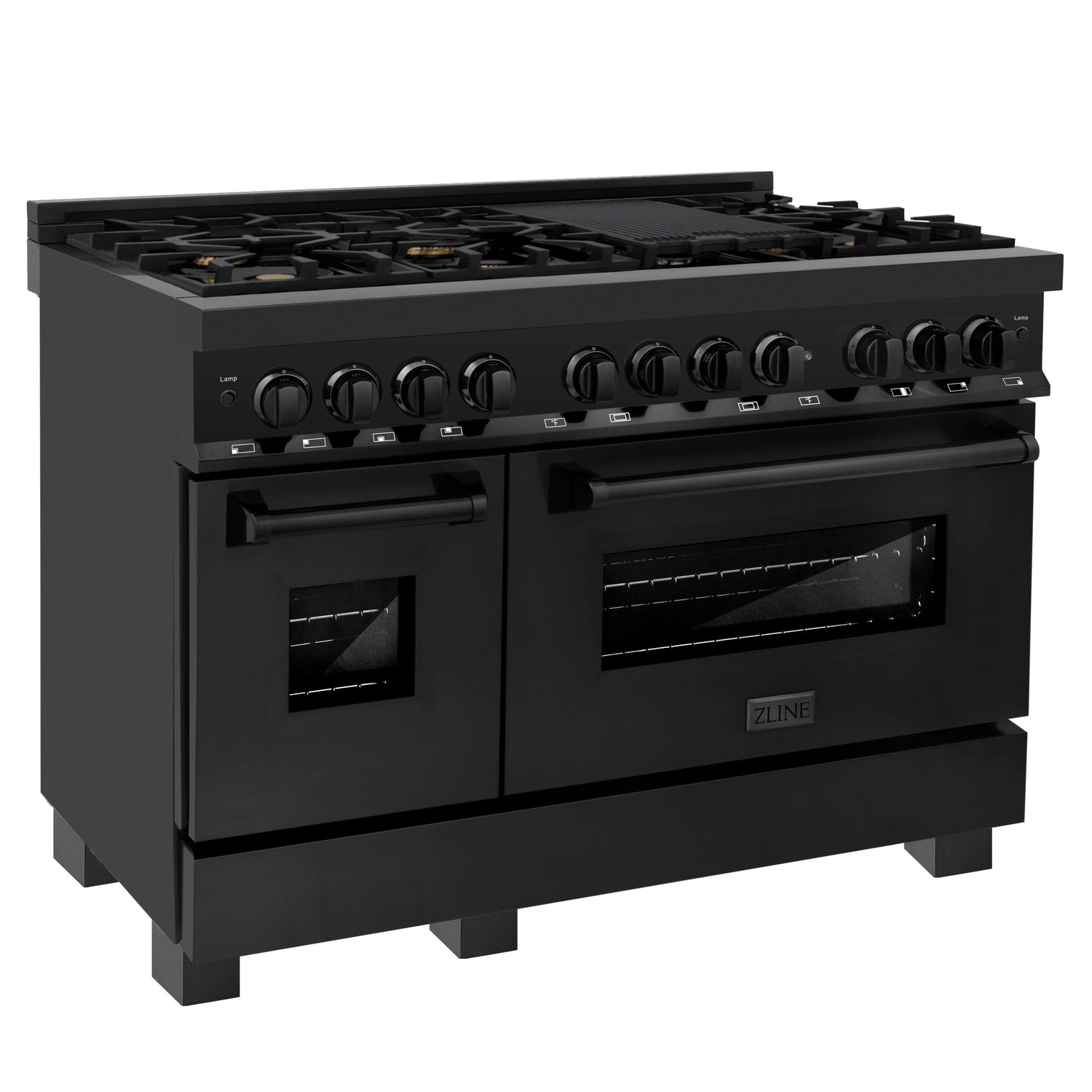 ZLINE 48 in. 6.0 cu. ft. Legacy Dual Fuel Range with 7 Burner Gas Cooktop and 2 Electric Ovens in Black Stainless Steel (RAB-48)
