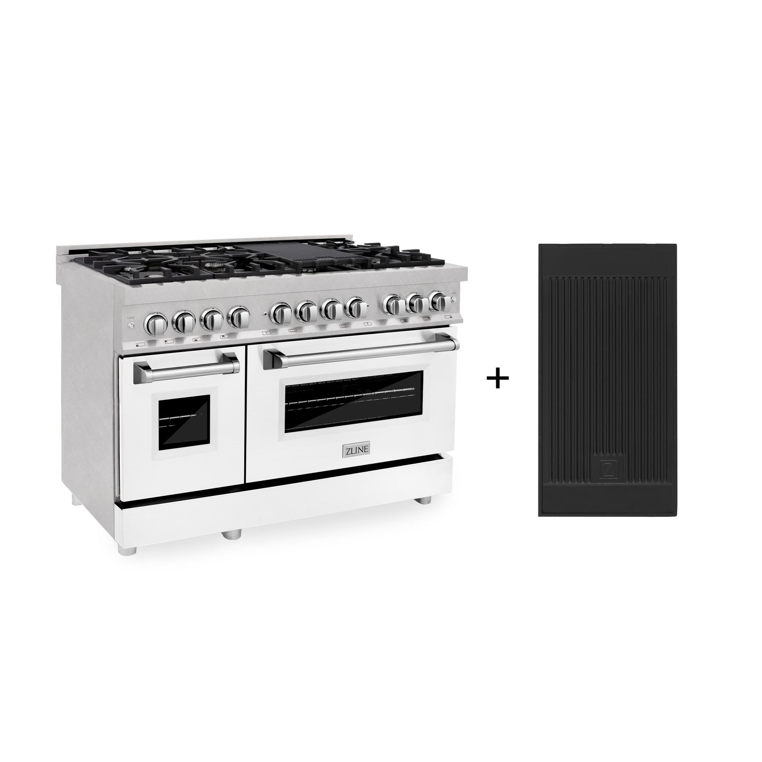 ZLINE 48 in. 6.0 cu. ft. Legacy Dual Fuel Range with 7 Burner Gas Cooktop and 2 Electric Ovens in Satin Stainless Steel with White Matte Doors and Griddle (RAS-WM-GR-48)