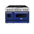 ZLINE 48 in. 6.0 cu. ft. Legacy Dual Fuel Range with 7 Burner Gas Cooktop and 2 Electric Ovens in Stainless Steel and Blue Gloss Doors (RA-BG-48)