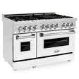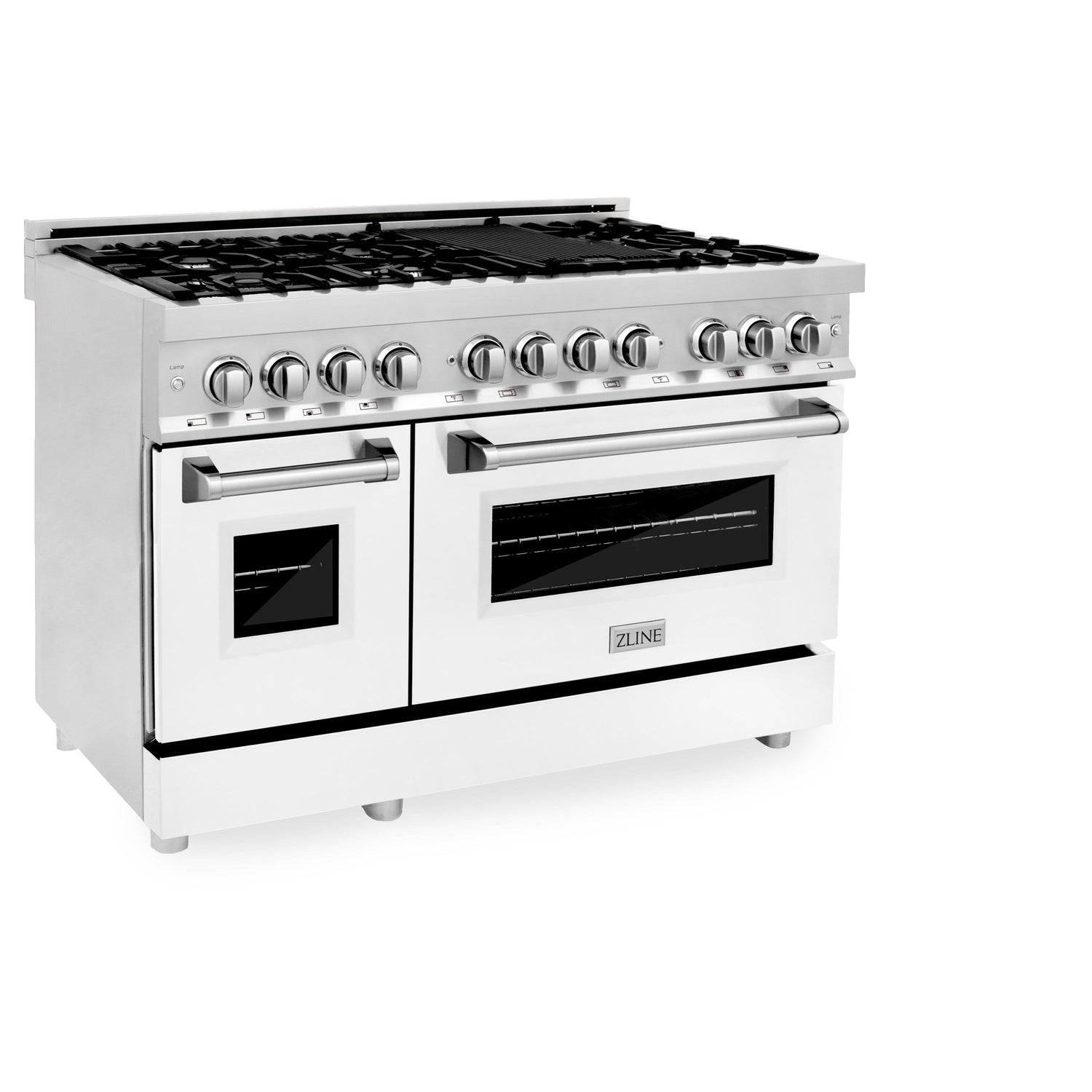 ZLINE 48 in. 6.0 cu. ft. Legacy Dual Fuel Range with 7 Burner Gas Cooktop and 2 Electric Ovens in Stainless Steel and White Matte Doors (RA-WM-48)