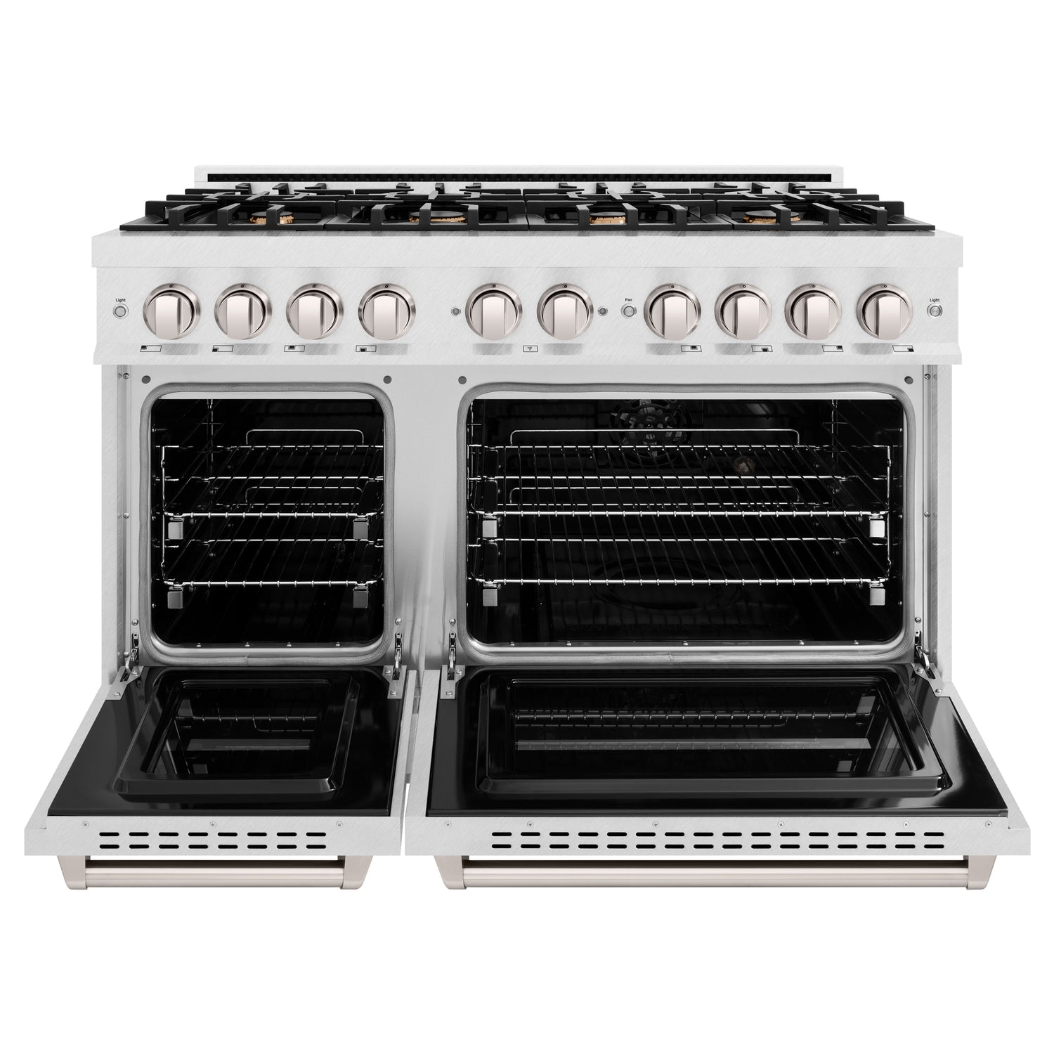 Luxury isn’t meant to be left desired—it’s meant to be attainable. The ZLINE 48 in. 6.7 cu. ft. Classic Double Oven Dual Fuel Range in Satin Stainless Steel with 8 Brass Burners (CDRS-BR-48) combines the elegance of a hand-finished porcelain gas cooktop with 8 Italian-made brass auto-reignition burners, a large electric convection oven with an energy-efficient cooling fan to ensure quiet operation, a small bake-and-broil oven, and Landscape oven door window designs allowing you to master every meal. With a modern, timeless style and refined functionality, ZLINE Classic Dual Fuel Ranges are masterfully crafted to deliver an elevated culinary experience.