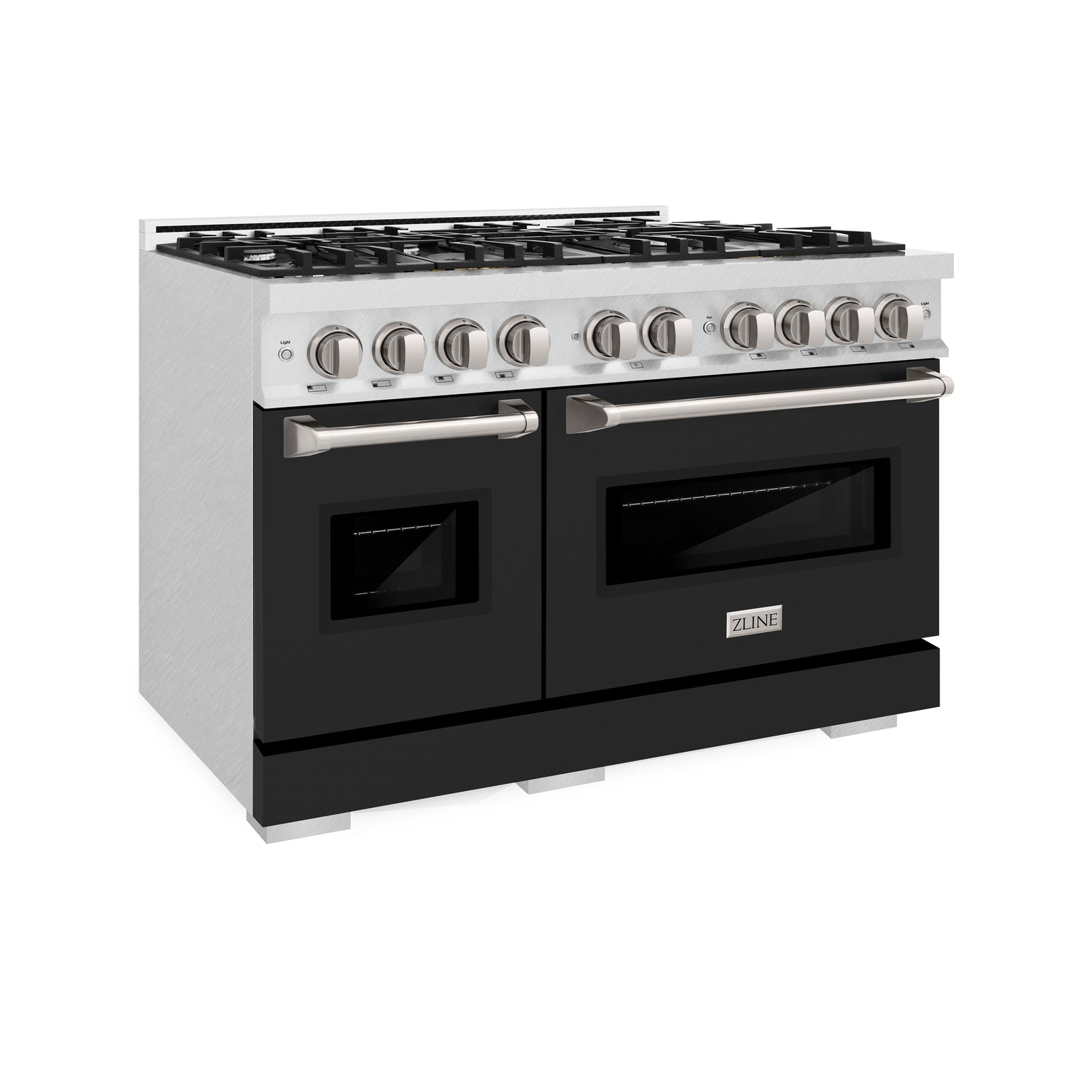 ZLINE 48 in. 6.7 cu. ft. Classic Double Oven Dual Fuel Range with 8 Burner Gas Cooktop in Satin Stainless Steel with Black Matte Doors (CDRS-BLM-48)