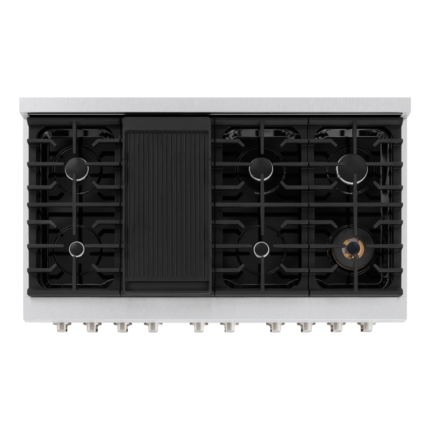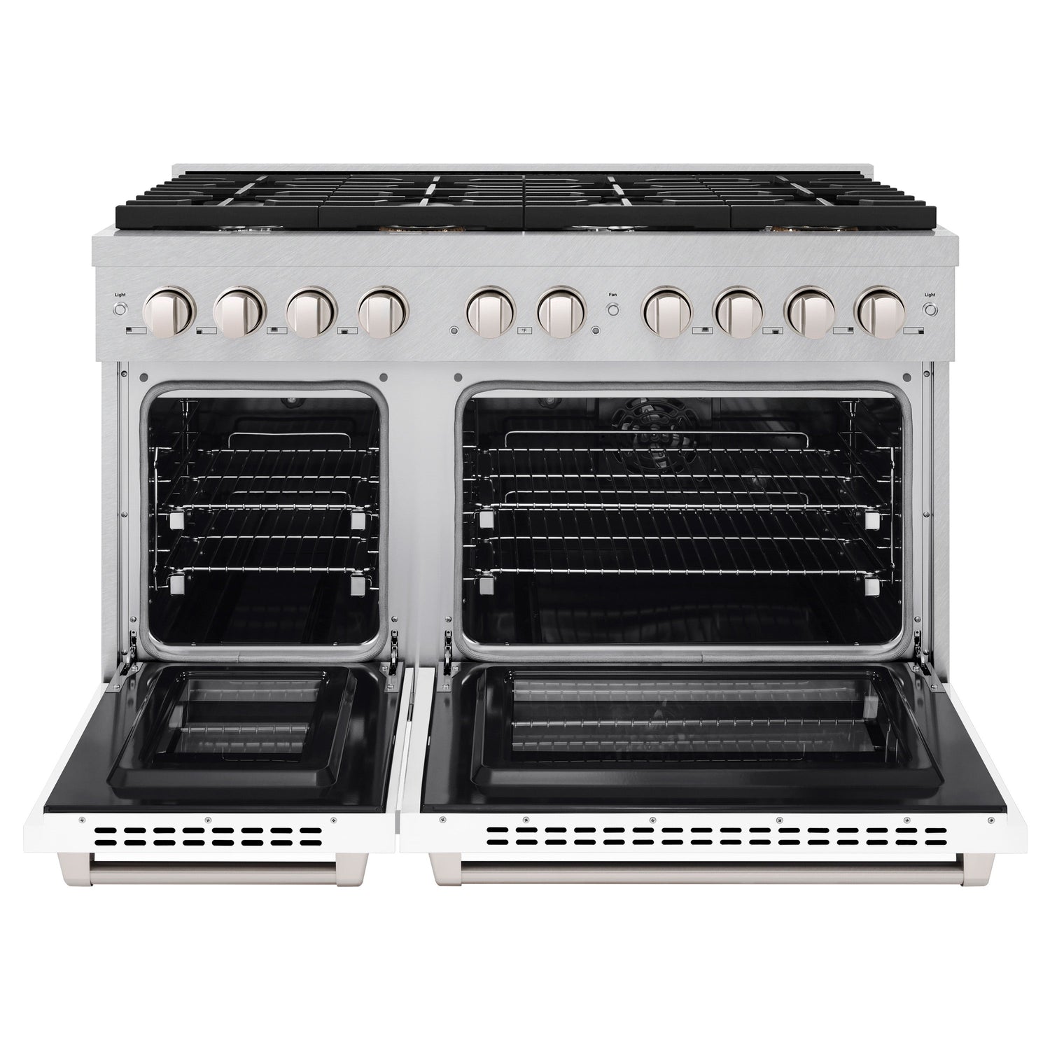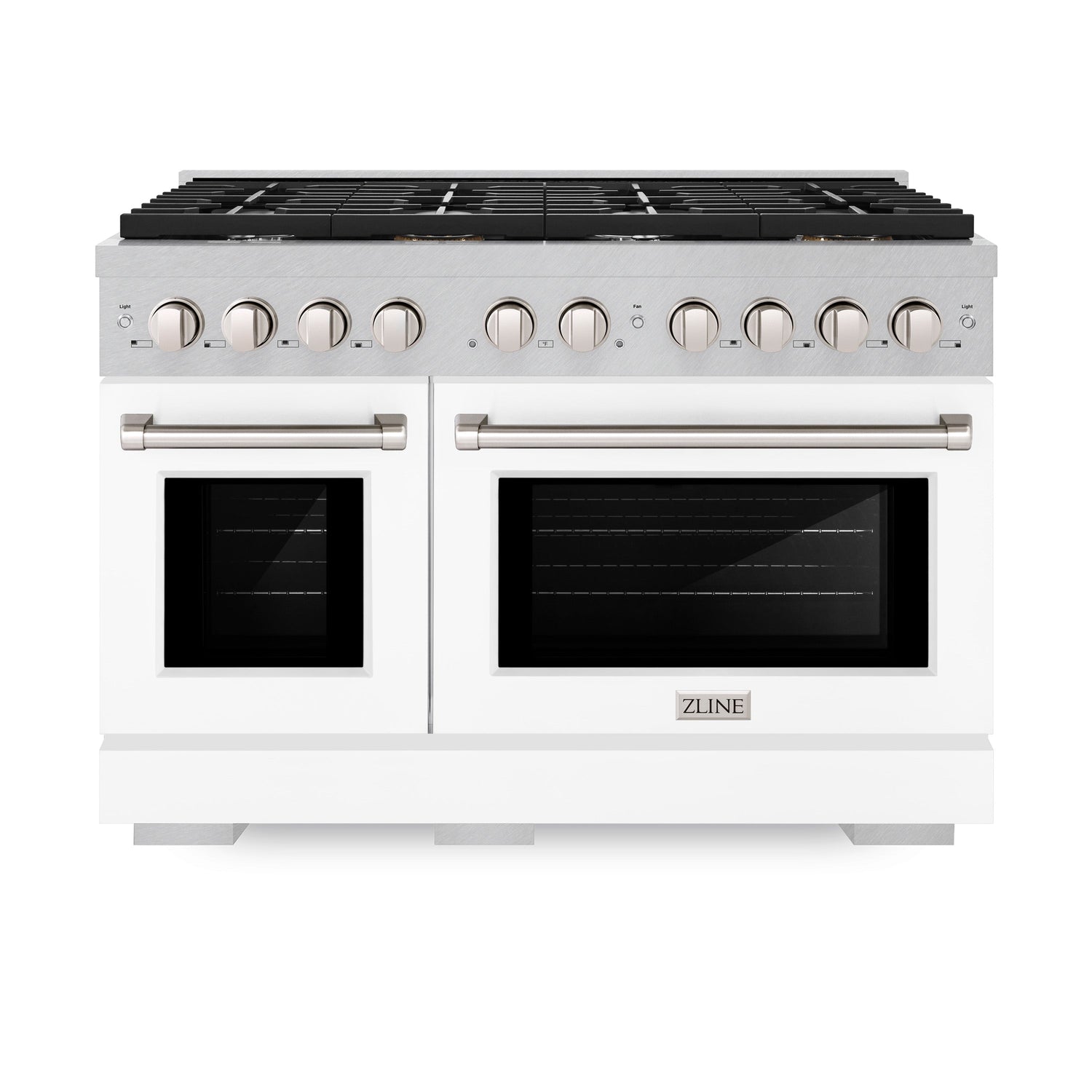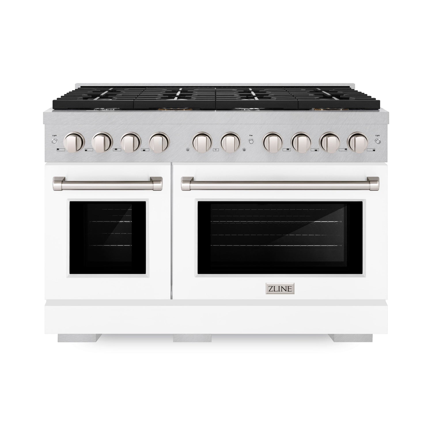 ZLINE 48 in. 6.7 cu. ft. Paramount Double Oven Dual Fuel Range with 8 Burner Gas Cooktop in Satin Stainless Steel with White Matte Doors (SDRS-WM-48)