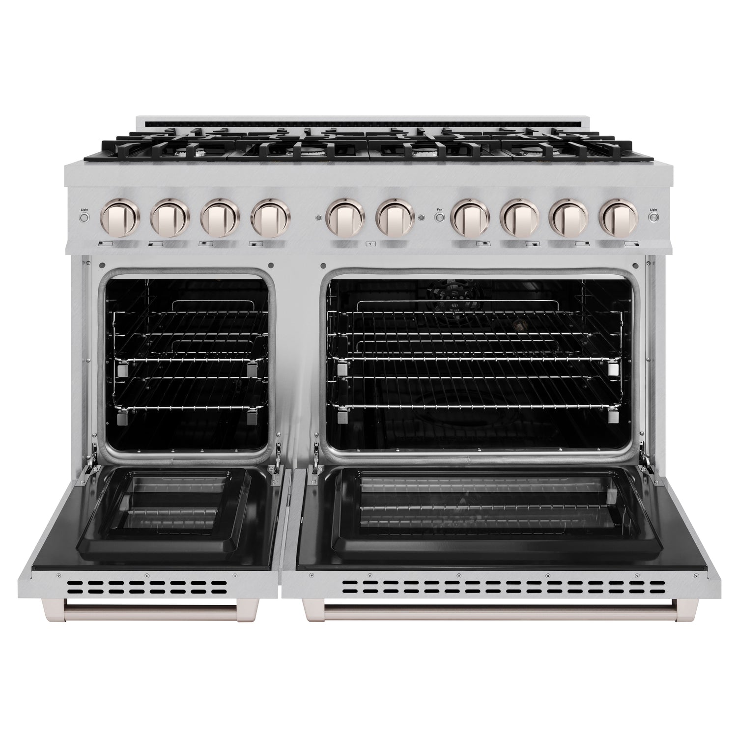 ZLINE 48 in. 6.7 cu. ft. Select Double Oven Dual Fuel Range with 8 Burner Gas Cooktop in Satin Stainless Steel (HDRS-48)