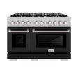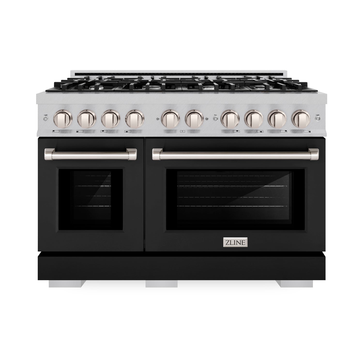 ZLINE 48 in. 6.7 cu. ft. Select Double Oven Gas Range with 8 Burner Cooktop in Satin Stainless Steel with Black Matte Doors (HGRS-BLM-48)