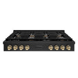 ZLINE 48 in. Autograph Edition Paramount Gas Rangetop with 8 Burners and Porcelain Cooktop in Black Stainless Steel with Polished Gold Accents (SRTBZ-48-G)