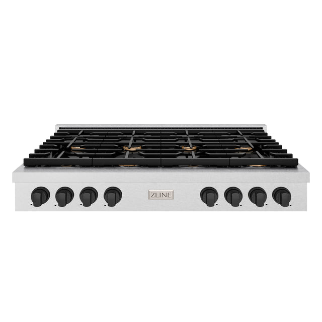 ZLINE 48 in. Autograph Edition Paramount Gas Rangetop with 8 Burners and Porcelain Cooktop in Satin Stainless Steel with Matte Black Accents (SRTSZ-48-MB)