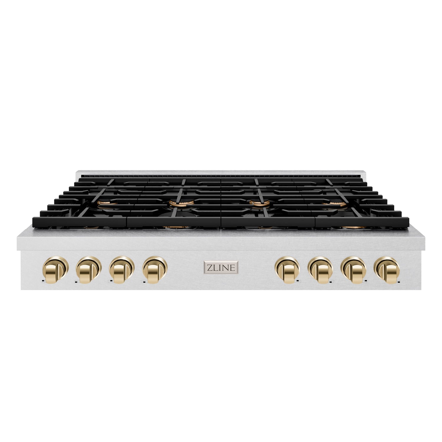 ZLINE 48 in. Autograph Edition Paramount Gas Rangetop with 8 Burners and Porcelain Cooktop in Satin Stainless Steel with Polished Gold Accents (SRTSZ-48-G)