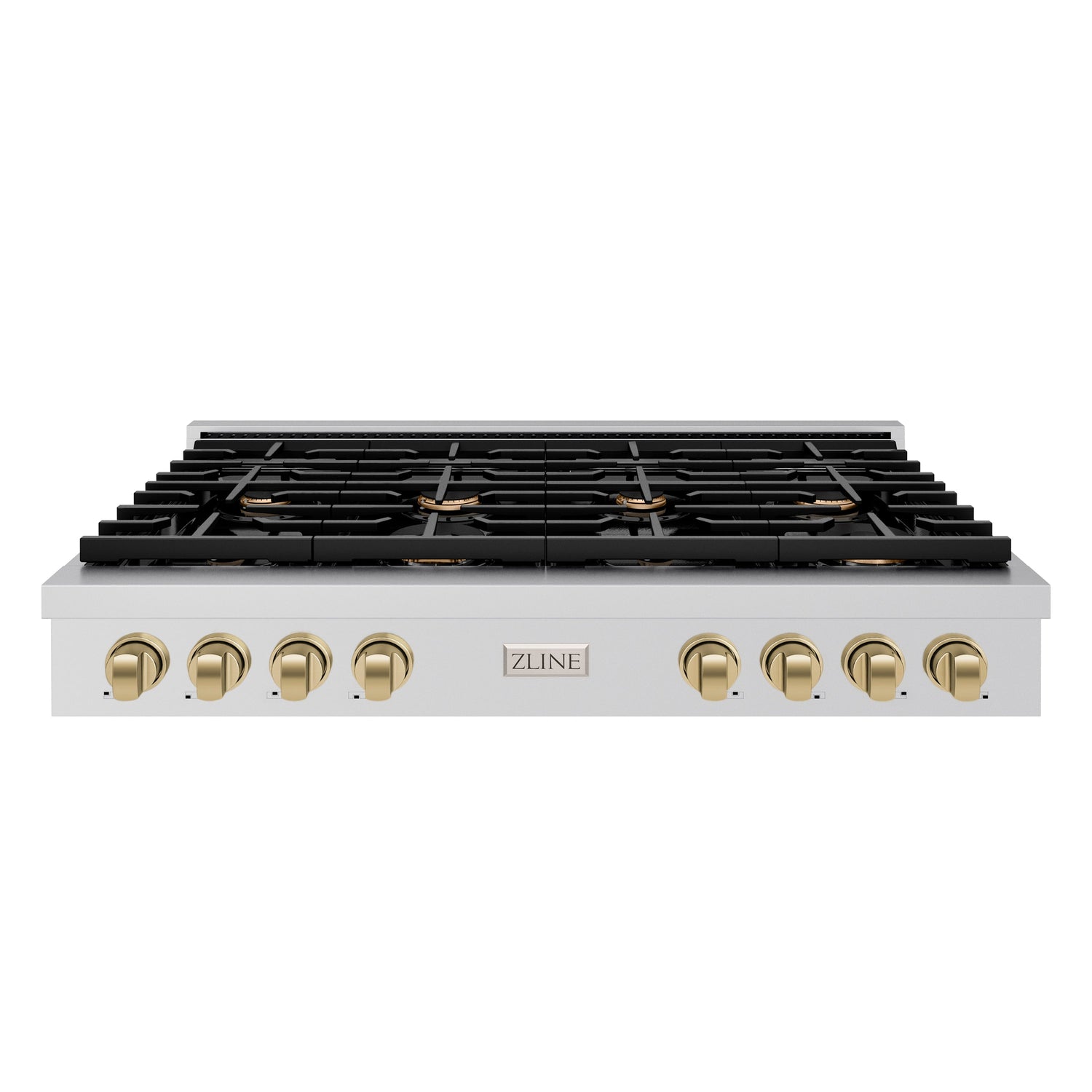 ZLINE 48 in. Autograph Edition Paramount Gas Rangetop with 8 Burners and Porcelain Cooktop in Stainless Steel with Champagne Bronze Accents (SRTZ-48-CB)