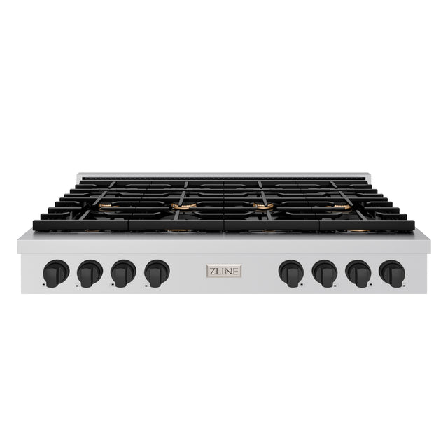ZLINE 48 in. Autograph Edition Paramount Gas Rangetop with 8 Burners and Porcelain Cooktop in Stainless Steel with Matte Black Accents (SRTZ-48-MB)
