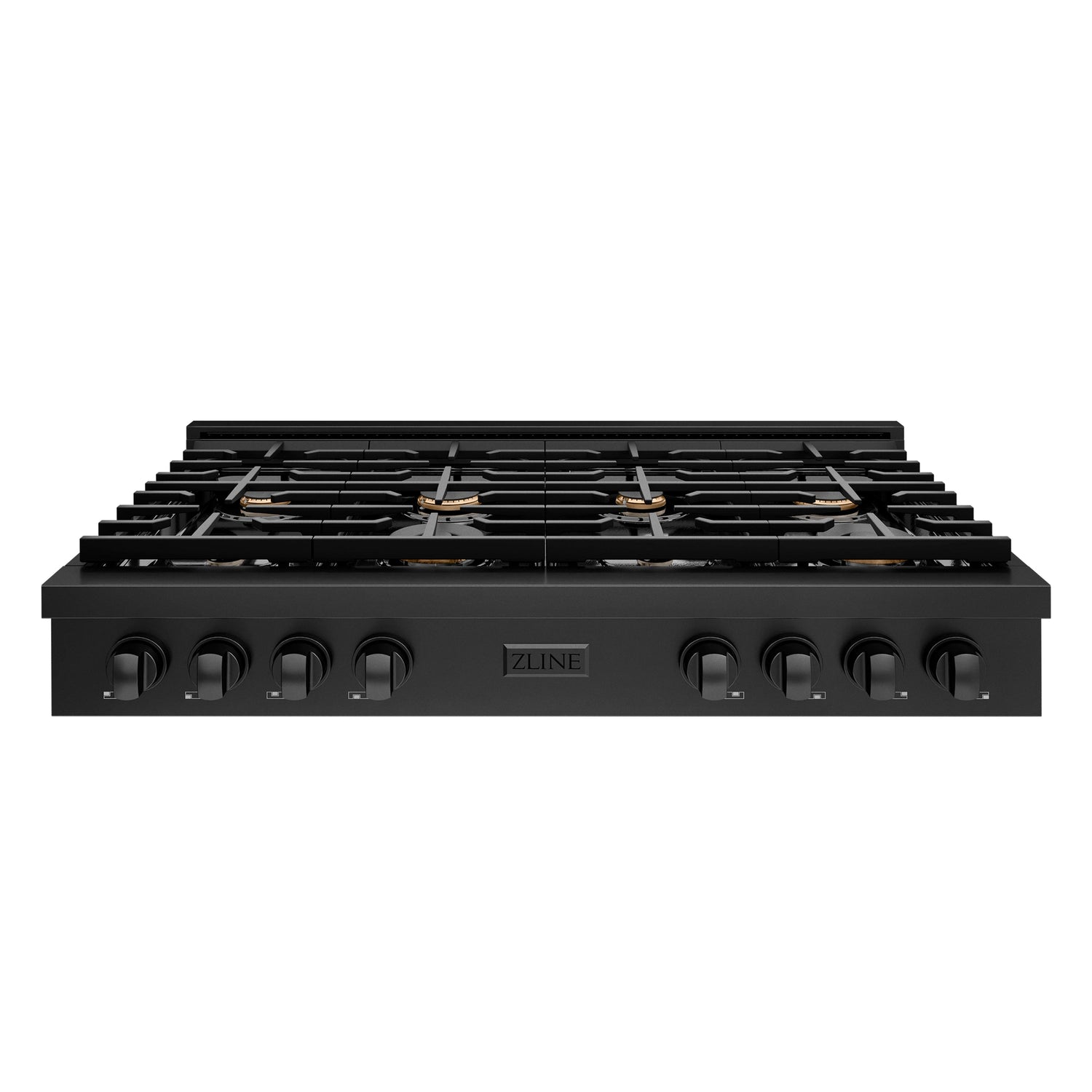 ZLINE 48 in. Paramount Gas Rangetop with 8 Brass Burners and Porcelain Cooktop in Black Stainless Steel (SRTB-BR-48)