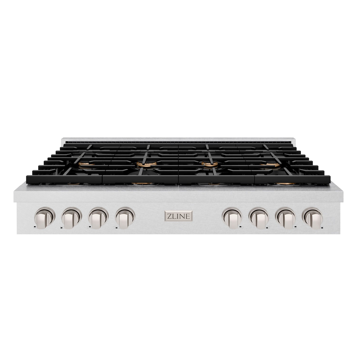 ZLINE 48 in. Paramount Gas Rangetop with 8 Brass Burners and Porcelain Cooktop in Satin Stainless Steel (SRTS-BR-48)