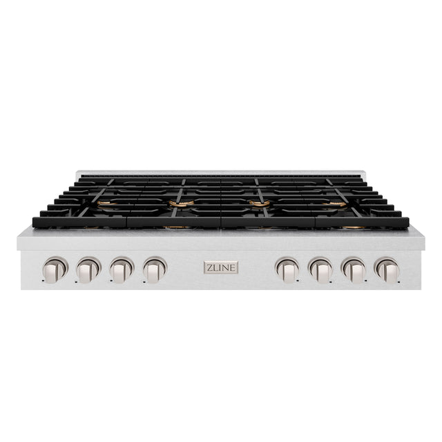 ZLINE 48 in. Paramount Gas Rangetop with 8 Brass Burners and Porcelain Cooktop in Satin Stainless Steel (SRTS-BR-48)