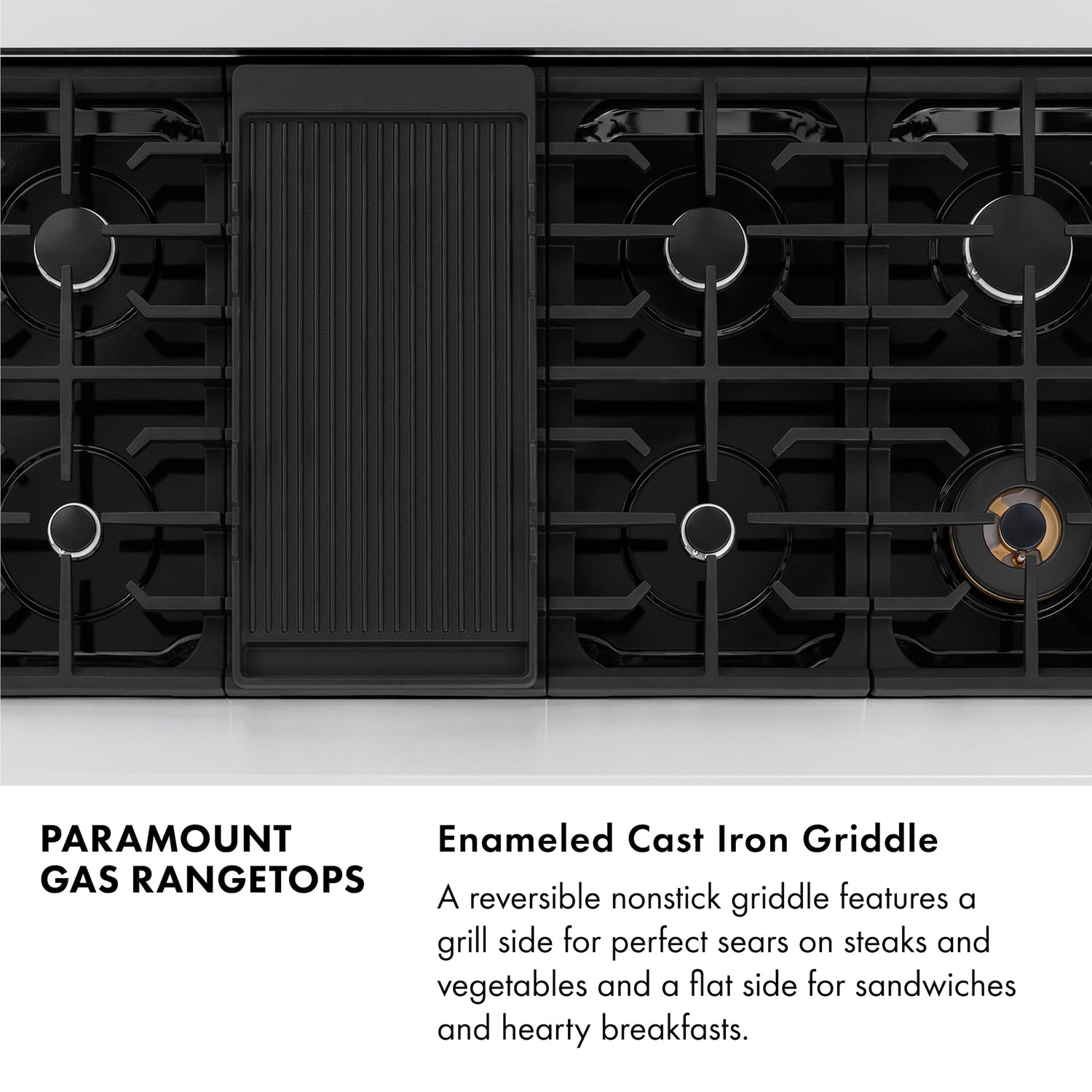 Luxury isn’t meant to be desired - it’s meant to be attainable. The ZLINE 48 in. Paramount Gas Rangetop with 8 Burners and Porcelain Cooktop in Stainless Steel (SRT48) features 8 Italian-made auto-reignition burners, a hand-crafted porcelain cooktop, and enhanced cast iron grates allowing you to master every meal. With a modern, timeless style and refined functionality, ZLINE Paramount Gas Rangetops are masterfully crafted to deliver an elevated culinary experience.