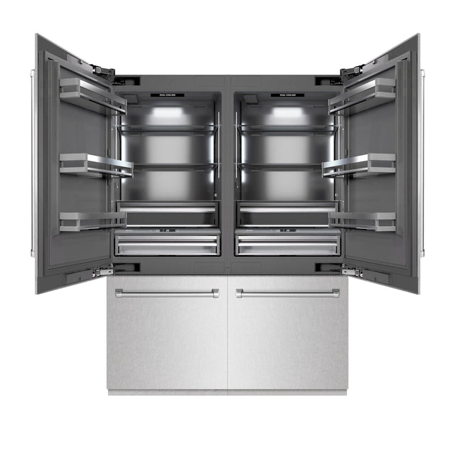 ZLINE 60 in. 32.2 cu. ft. French Door Built-In Bottom Freezer Refrigerator with Water Dispensers and Ice Makers in Satin Stainless Steel with Graphite Gray Interior (GRBIV-SN-60)