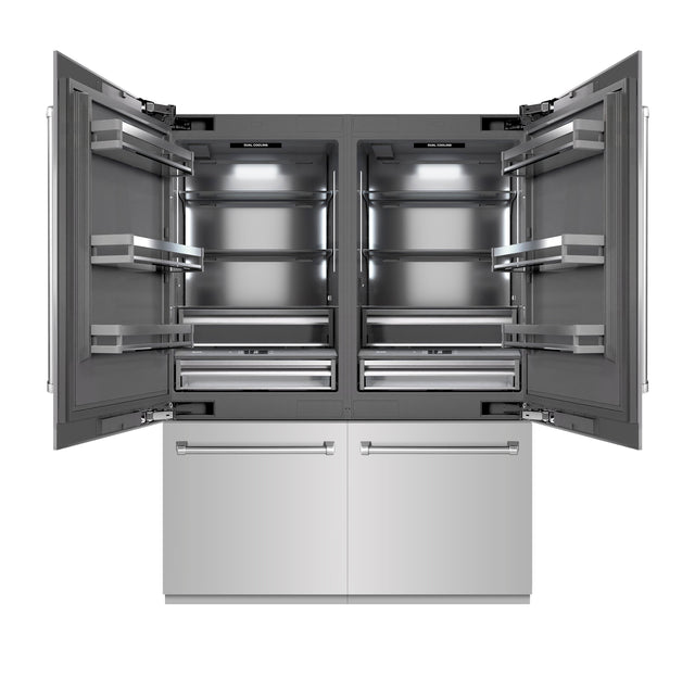 ZLINE 60 in. 32.2 cu. ft. French Door Built-In Bottom Freezer Refrigerator with Water Dispensers and Ice Makers in Stainless Steel with Graphite Gray Interior (GRBIV-304-60)