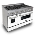 ZLINE 60 in. 7.4 cu. ft. Legacy Dual Fuel Range with 9 Burner Gas Cooktop and 2 Electric Convection Ovens in Satin Stainless Steel and White Matte Doors (RAS-WM-60)