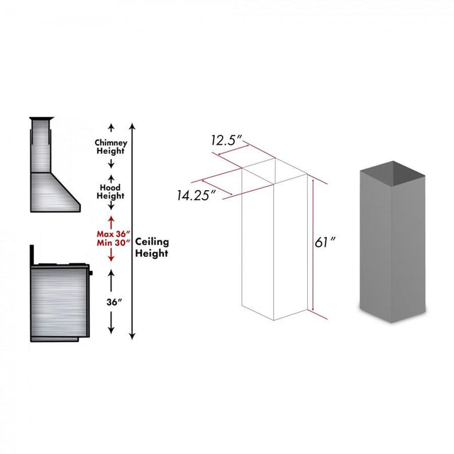 This 1 Piece Chimney Extension will fit all ZLINE range hoods with model number: