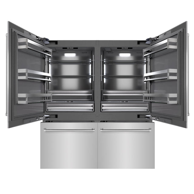 ZLINE 72 in. 39.6 cu. ft. French Door Built-In Bottom Freezer Refrigerator with Water Dispensers and Ice Makers in Stainless Steel with Graphite Gray Interior (GRBIT-304-72)