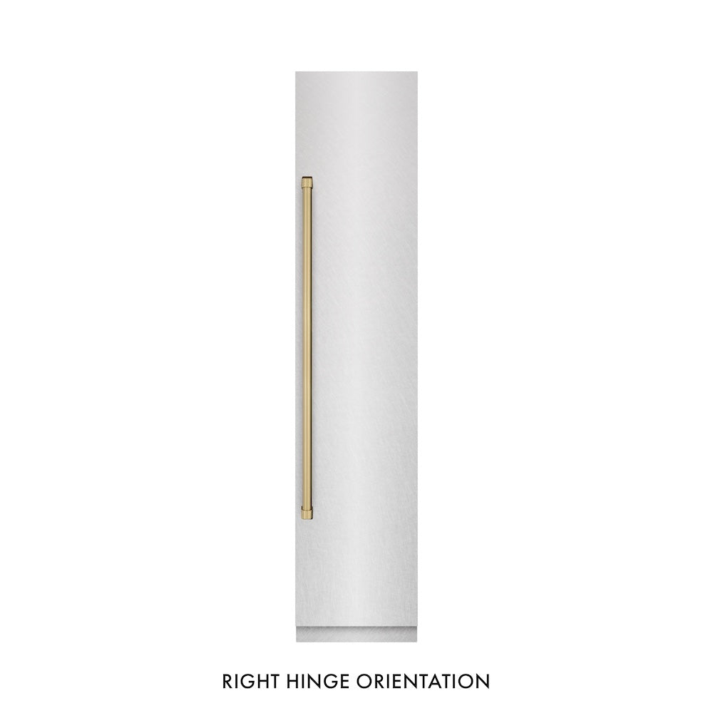 ZLINE Autograph Edition 18 in. 8.6 cu. ft. Right Hinge Column Freezer in Satin Stainless Steel with Graphite Gray Interior and Champagne Bronze Accents (RCFVRZ-SN-18-CB)