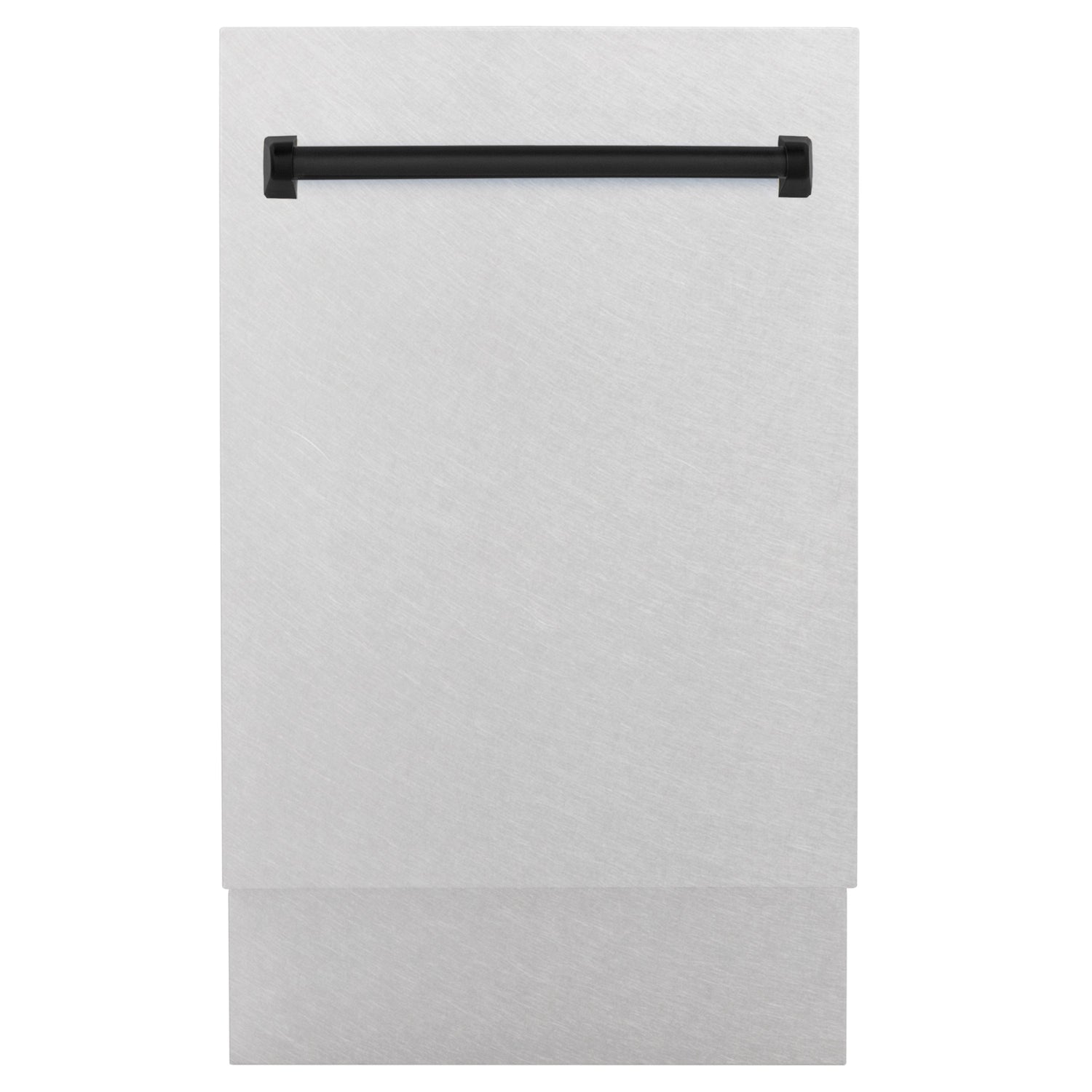ZLINE Autograph Edition 18” Tallac Series 3rd Rack Top Control Built-In Dishwasher in Fingerprint Resistant Stainless Steel with Matte Black Handle, 51dBa (DWVZ-SN-18-MB)
