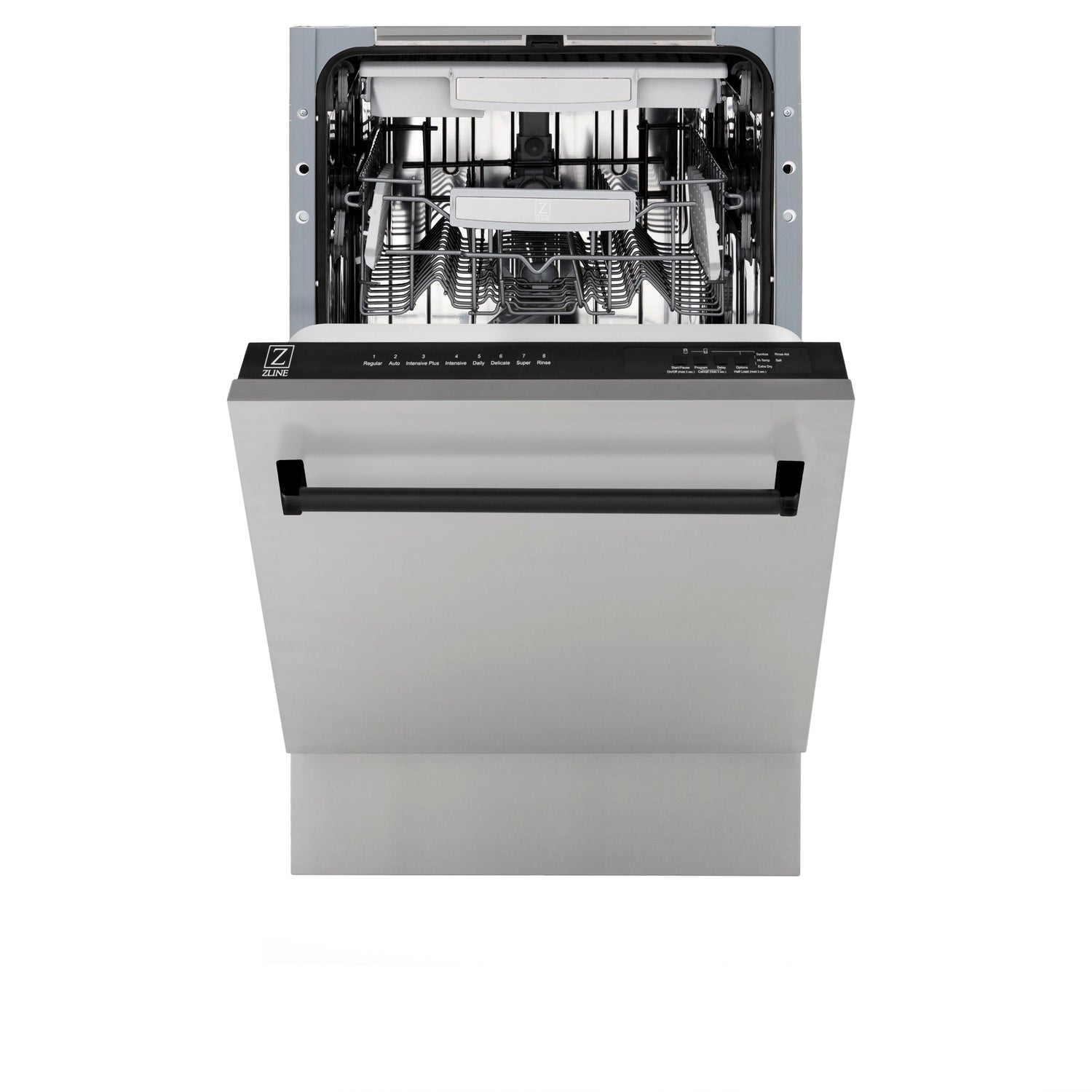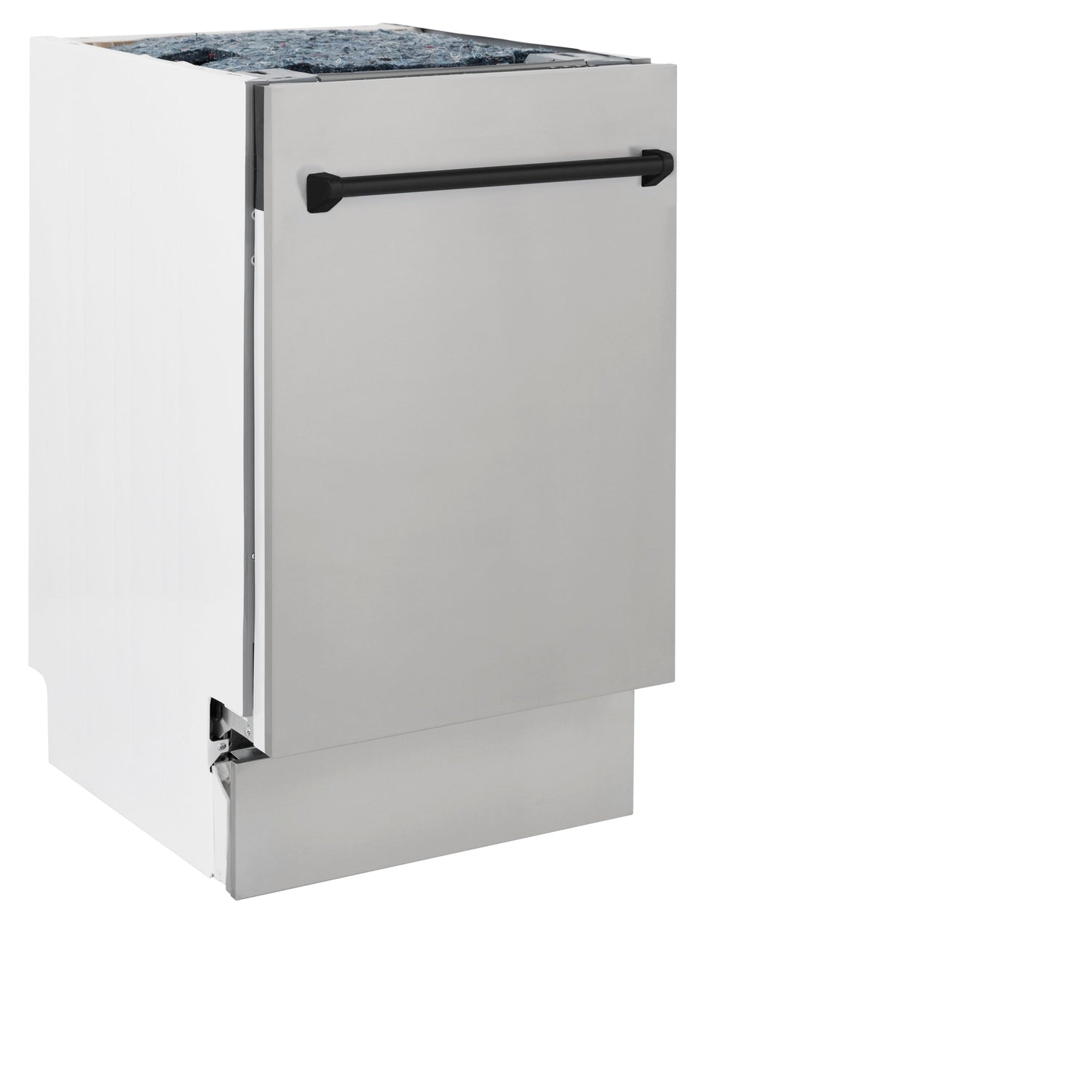 ZLINE Autograph Edition 18” Tallac Series 3rd Rack Top Control Built-In Dishwasher in Stainless Steel with Matte Black Handle, 51dBa (DWVZ-304-18-MB)