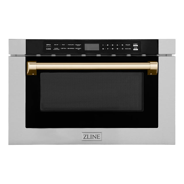 ZLINE Autograph Edition 24 in. 1.2 cu. ft. Built-in Microwave Drawer with a Traditional Handle in Stainless Steel and Polished Gold Accents (MWDZ-1-H-G)