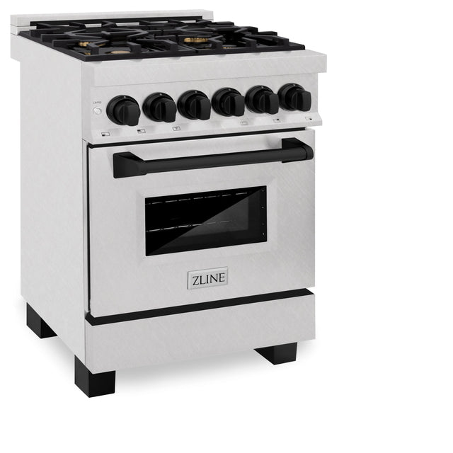 ZLINE Autograph Edition 24 in. 2.8 cu. ft. Legacy Dual Fuel Range with 4 Burner Gas Cooktop and Electric Convection Oven in Satin Stainless Steel and Matte Black Accents (RASZ-SN-24-MB)