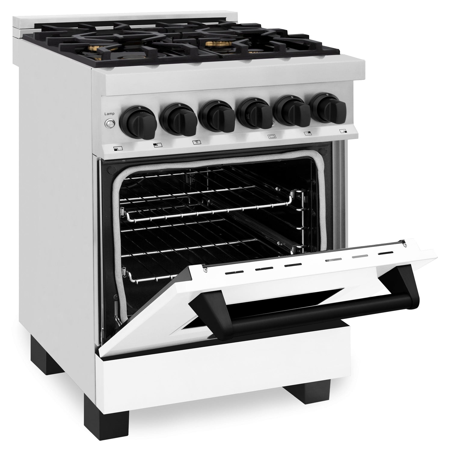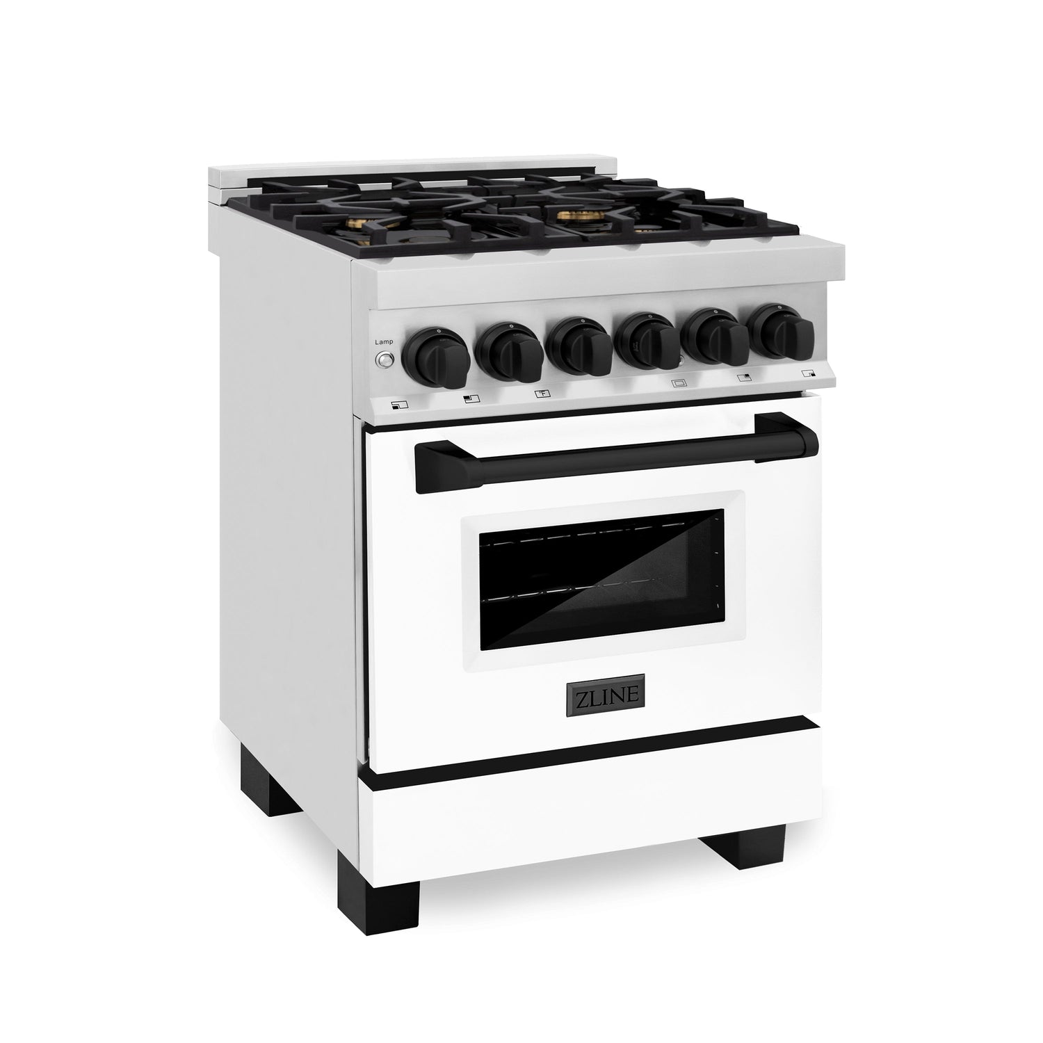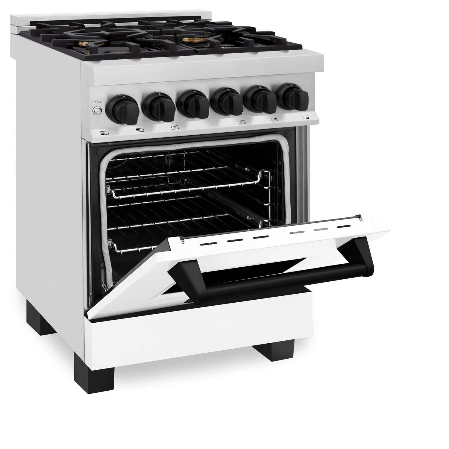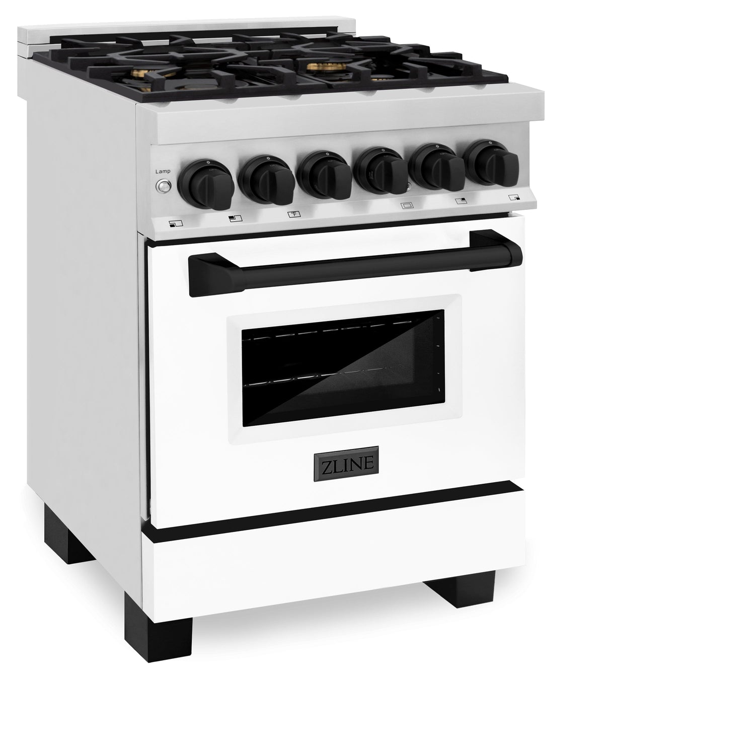 ZLINE Autograph Edition 24 in. 2.8 cu. ft. Legacy Dual Fuel Range with 4 Burner Gas Cooktop and Electric Convection Oven in Stainless Steel with White Matte Door and Matte Black Accents (RAZ-WM-24-MB)