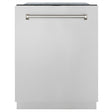 ZLINE Autograph Edition 24 in. Monument Series 3rd Rack Top Touch Control Tall Tub Dishwasher in Stainless Steel with Polished Nickel Helix Handle, 45dBa (DWMTZ-30424-KPN)