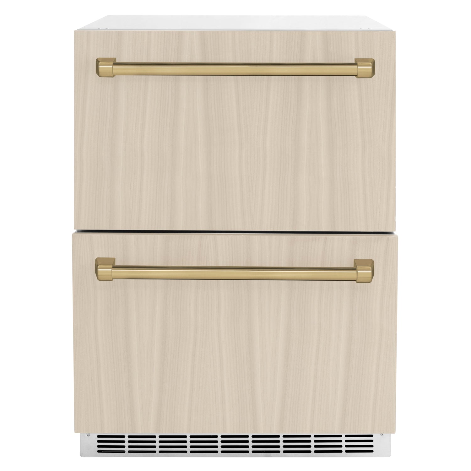 Luxury isn’t meant to be desired - it’s meant to be attainable. The ZLINE Autograph Edition 24 in. Touchstone 168 Can Outdoor-Rated Dual Refrigerator Drawer with Panel-Ready Doors and Champagne Bronze Handles (RDSPOZ-24-CB) features state-of-the-art cooling technology, dual smooth glide soft-closing drawers, and an expansive interior capable of holding multiple beverages. Designed with a fully wrapped, anti-sweat stainless steel exterior customizable panel-ready doors perfect for indoor or outdoor installation, ZLINE Autograph Edition Touchstone Refrigerator Drawers are masterfully crafted to let you host parties of any size for any occasion.