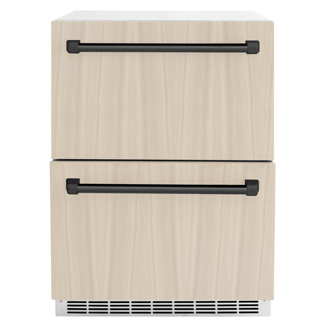 ZLINE Autograph Edition 24 in. Touchstone 168 Can Outdoor-Rated Dual Refrigerator Drawer with Panel-Ready Doors and Matte Black Handles (RDSPOZ-24-MB)