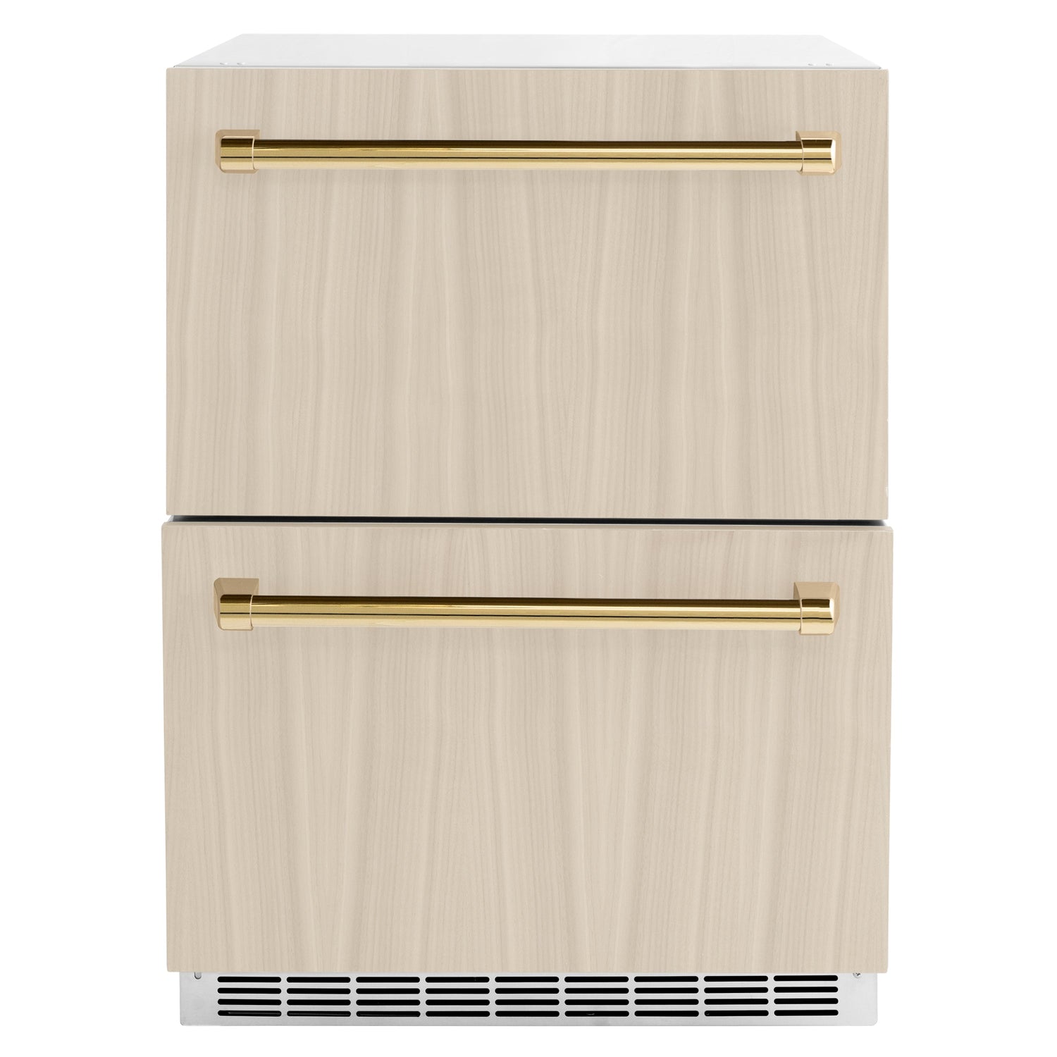 Luxury isn’t meant to be desired - it’s meant to be attainable. The ZLINE Autograph Edition 24 in. Touchstone 168 Can Outdoor-Rated Dual Refrigerator Drawer with Panel-Ready Doors and Polished Gold Handles (RDSPOZ-24-G) features state-of-the-art cooling technology, dual smooth glide soft-closing drawers, and an expansive interior capable of holding multiple beverages. Designed with a fully wrapped, anti-sweat stainless steel exterior customizable panel-ready doors perfect for indoor or outdoor installation, ZLINE Autograph Edition Touchstone Refrigerator Drawers are masterfully crafted to let you host parties of any size for any occasion.