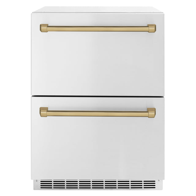 ZLINE Autograph Edition 24 in. Touchstone 168 Can Outdoor-Rated Dual Refrigerator Drawer with Stainless Steel Doors and Champagne Bronze Handles (RDSOZ-ST-24-CB)