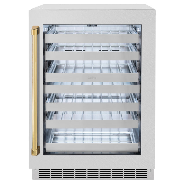 ZLINE Autograph Edition 24 in. Touchstone Dual Zone 44 Bottle Wine Cooler with Satin Stainless Steel Glass Door and Polished Gold Handle (RWDOZ-SN-24-G)