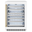 ZLINE Autograph Edition 24 in. Touchstone Dual Zone 44 Bottle Wine Cooler With White Matte Glass Door And Champagne Bronze Handle (RWDOZ-WM-24-CB)