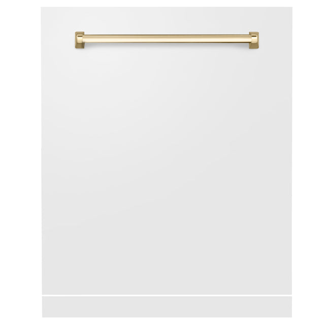 ZLINE Autograph Edition 24" Monument Dishwasher Panel in White Matte with Polished Gold Handle (DPMTZ-WM-24-G)