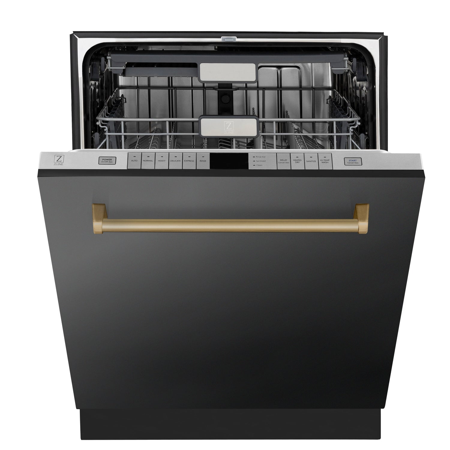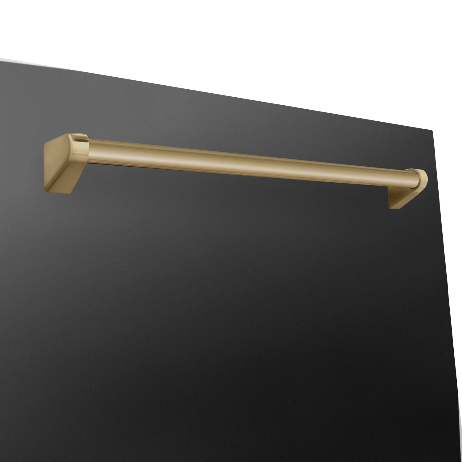 ZLINE Autograph Edition 24" Monument Series 3rd Rack Top Touch Control Tall Tub Dishwasher in Black Stainless Steel with Champagne Bronze Handle, 45dBa (DWMTZ-BS-24-CB)