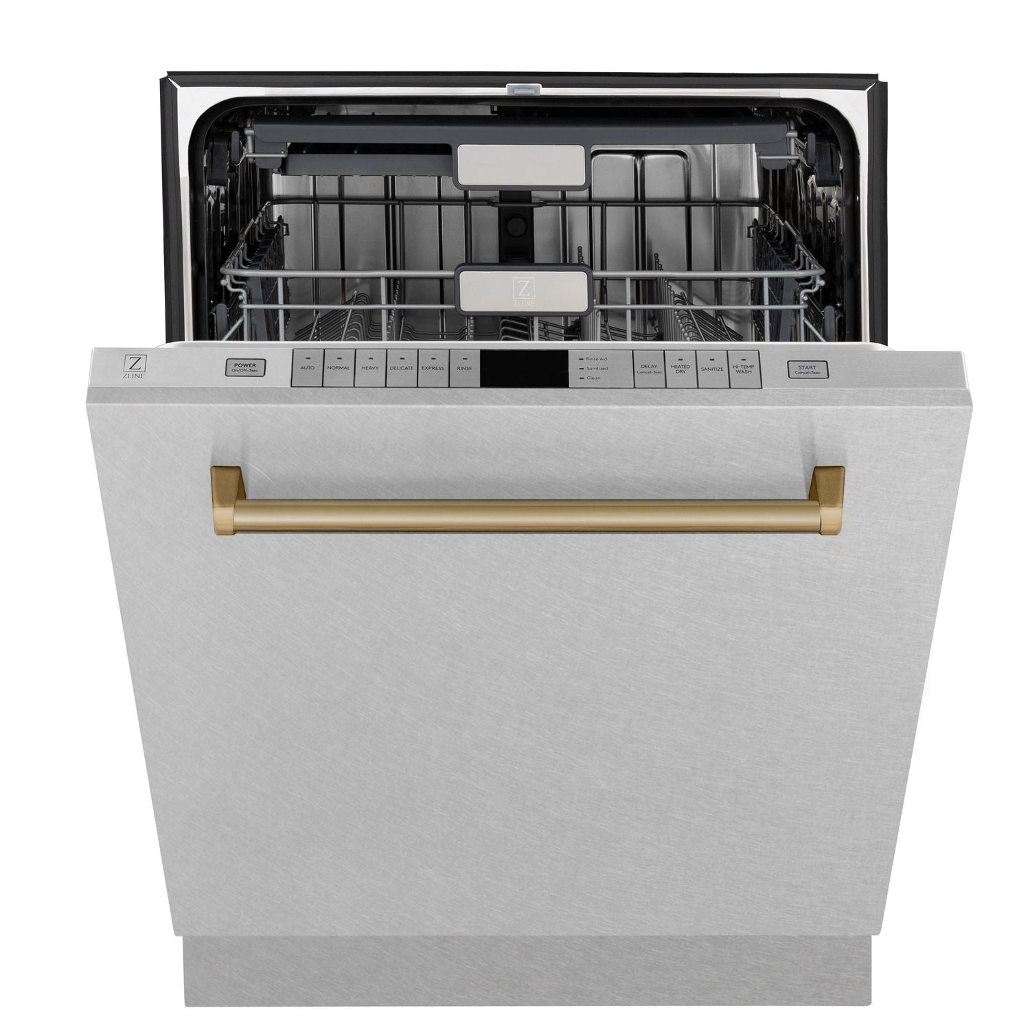 Luxury isn’t meant to be desired - it’s meant to be attainable. The ZLINE Autograph Edition 24" Monument Series 3rd Rack Top Touch Control Tall Tub Dishwasher in DuraSnow® Fingerprint Resistant Stainless Steel with Champagne Bronze Handle, 45dBa (DWMTZ-SN-24-CB) utilizes innovative DuraWash® technology and powerful energy-efficient performance to achieve optimal results. Encompassing limitless beauty, precision, and quality, the Autograph Edition Series creates a luxury look that will transform your space. Achieve ZLINE Attainable Luxury® excellence with innovative features designed to enhance your kitchen’s capability with timeless style.