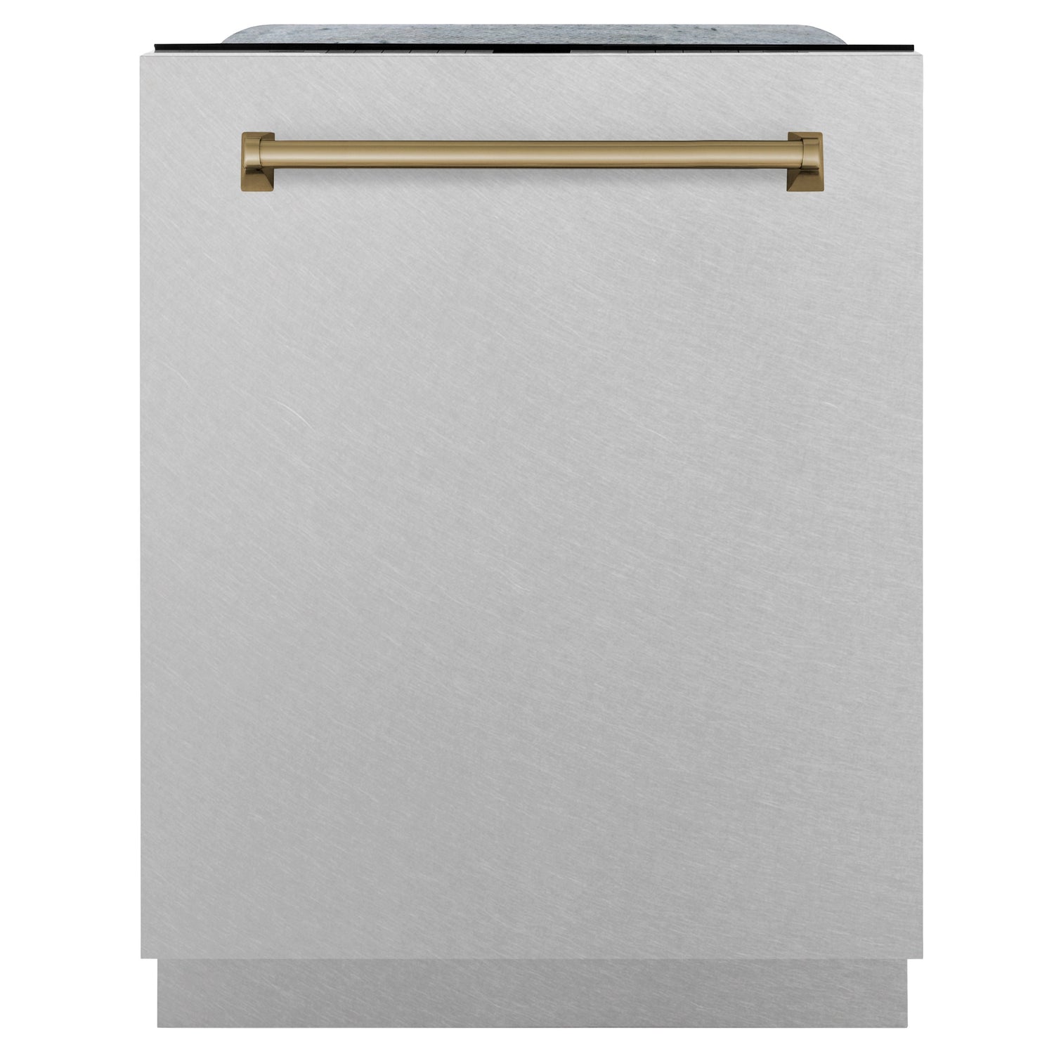 ZLINE Autograph Edition 24" Monument Series 3rd Rack Top Touch Control Tall Tub Dishwasher in Fingerprint Resistant Stainless Steel with Champagne Bronze Handle, 45dBa (DWMTZ-SN-24-CB)