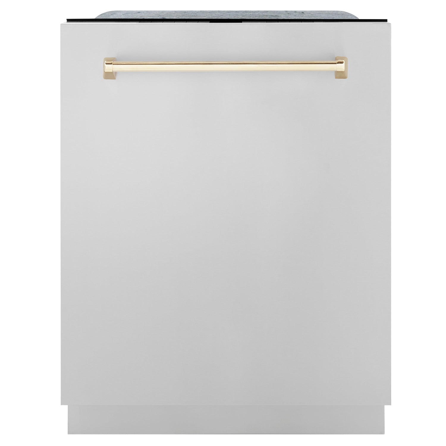 ZLINE Autograph Edition 24" Monument Series 3rd Rack Top Touch Control Tall Tub Dishwasher in Stainless Steel with Polished Gold Handle, 45dBa (DWMTZ-304-24-G)
