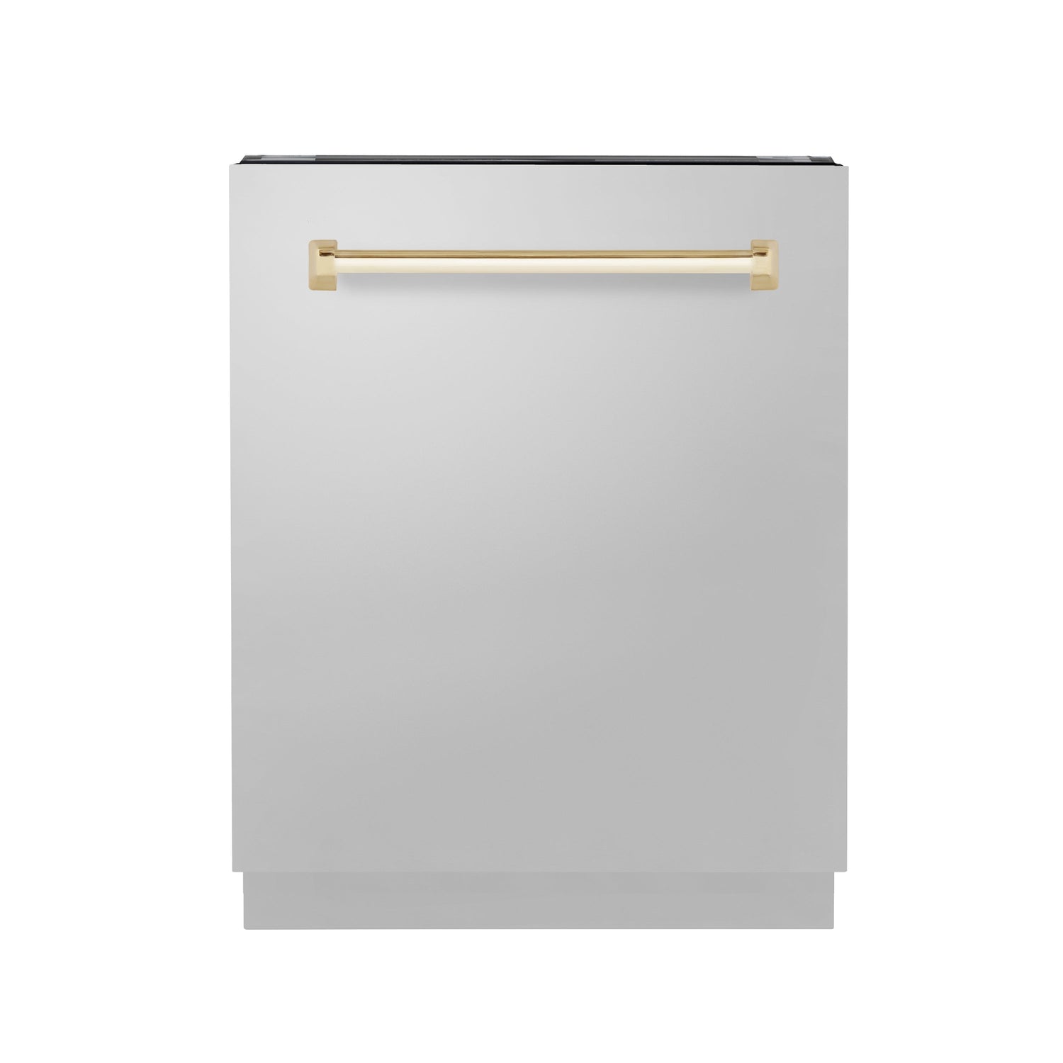 ZLINE Autograph Edition 24" Tallac Series 3rd Rack Top Control Built-In Tall Tub Dishwasher in Stainless Steel with Polished Gold Handle, 51dBa (DWVZ-304-24-G)