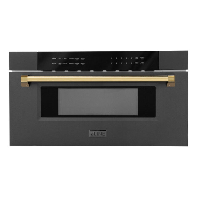 ZLINE Autograph Edition 30 in. 1.2 cu. ft. Built-in Microwave Drawer in Black Stainless Steel with Polished Gold Accents (MWDZ-30-BS-G)