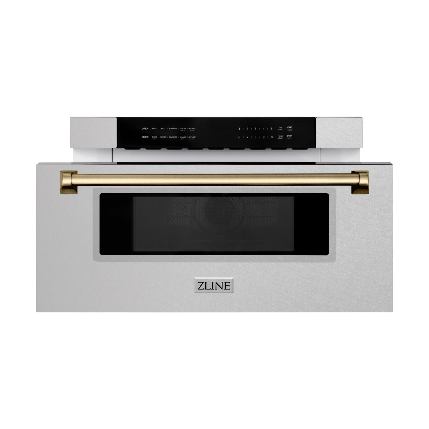 ZLINE Autograph Edition 30 in. 1.2 cu. ft. Built-In Microwave Drawer in Fingerprint Resistant Stainless Steel with Champagne Bronze Accents (MWDZ-30-SS-CB)