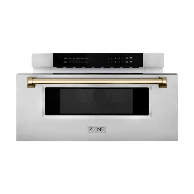 ZLINE Autograph Edition 30 in. 1.2 cu. ft. Built-In Microwave Drawer in Stainless Steel with Champagne Bronze Accents (MWDZ-30-CB)