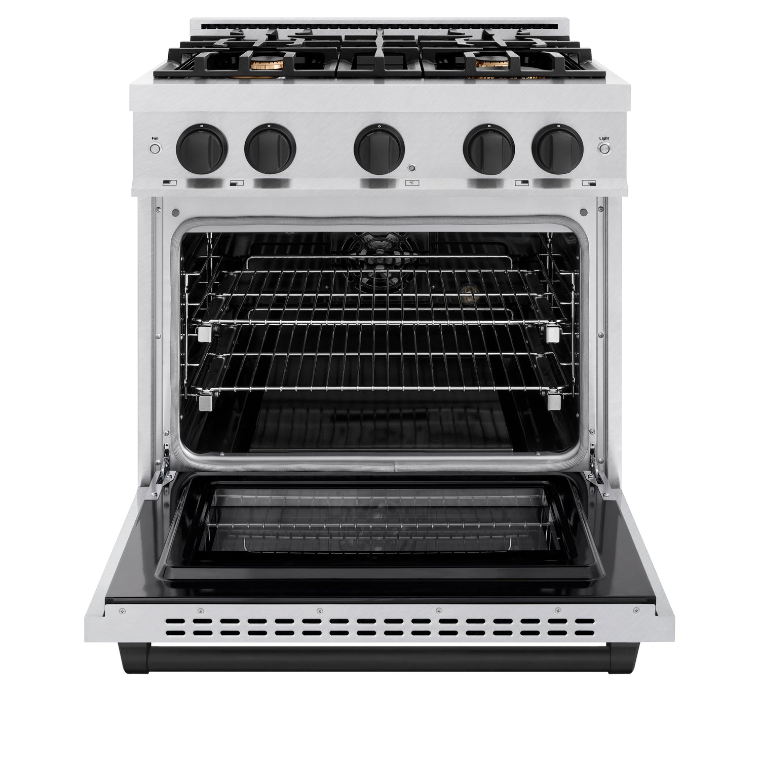 Luxury isn’t meant to be left desired—it’s meant to be attainable. The ZLINE Autograph Edition 30 in. 4.2 cu. ft. Select Dual Fuel Range with 4 Burner Gas Cooktop and Electric Convection Oven in Satin Stainless Steel with Matte Black Accents (HDRSZ-30-MB) combines the elegance of a hand-finished porcelain gas cooktop with 4 Italian-made auto-reignition burners, an electric convection oven with an energy-efficient cooling fan to ensure quiet operation, a Horizon oven door window design, and stunning matte black knobs and handle allowing you to master every meal. With a modern, timeless style and refined functionality, ZLINE Select Dual Fuel Ranges are masterfully crafted to deliver an elevated culinary experience.