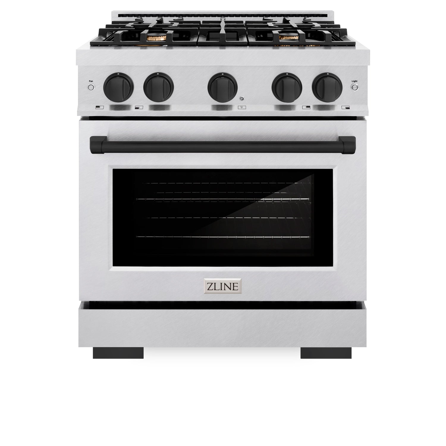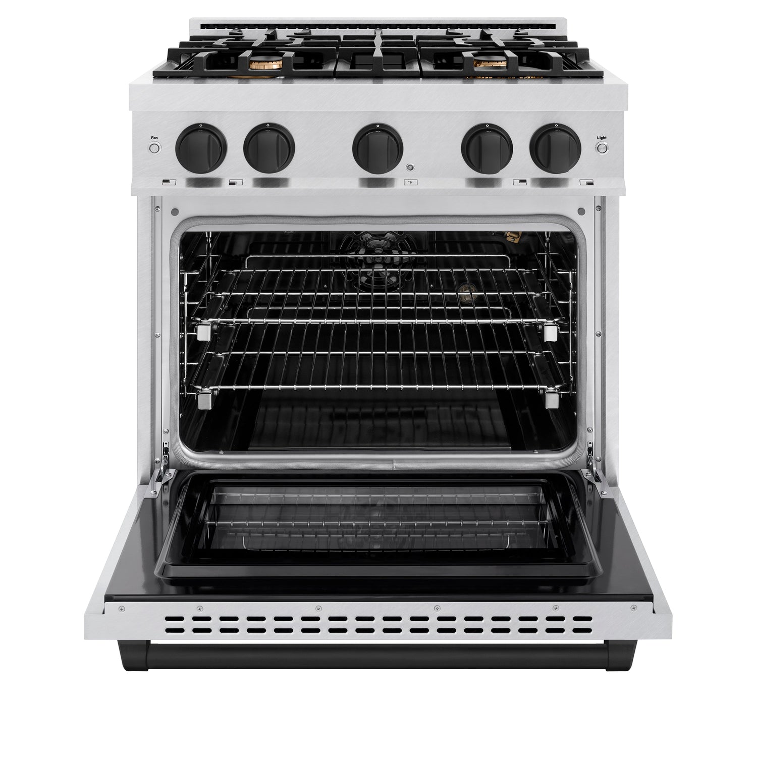 ZLINE Autograph Edition 30 in. 4.2 cu. ft. Select Gas Range with 4 Burner Cooktop and Convection Gas Oven in Satin Stainless Steel and Matte Black Accents (HGRSZ-30-MB)