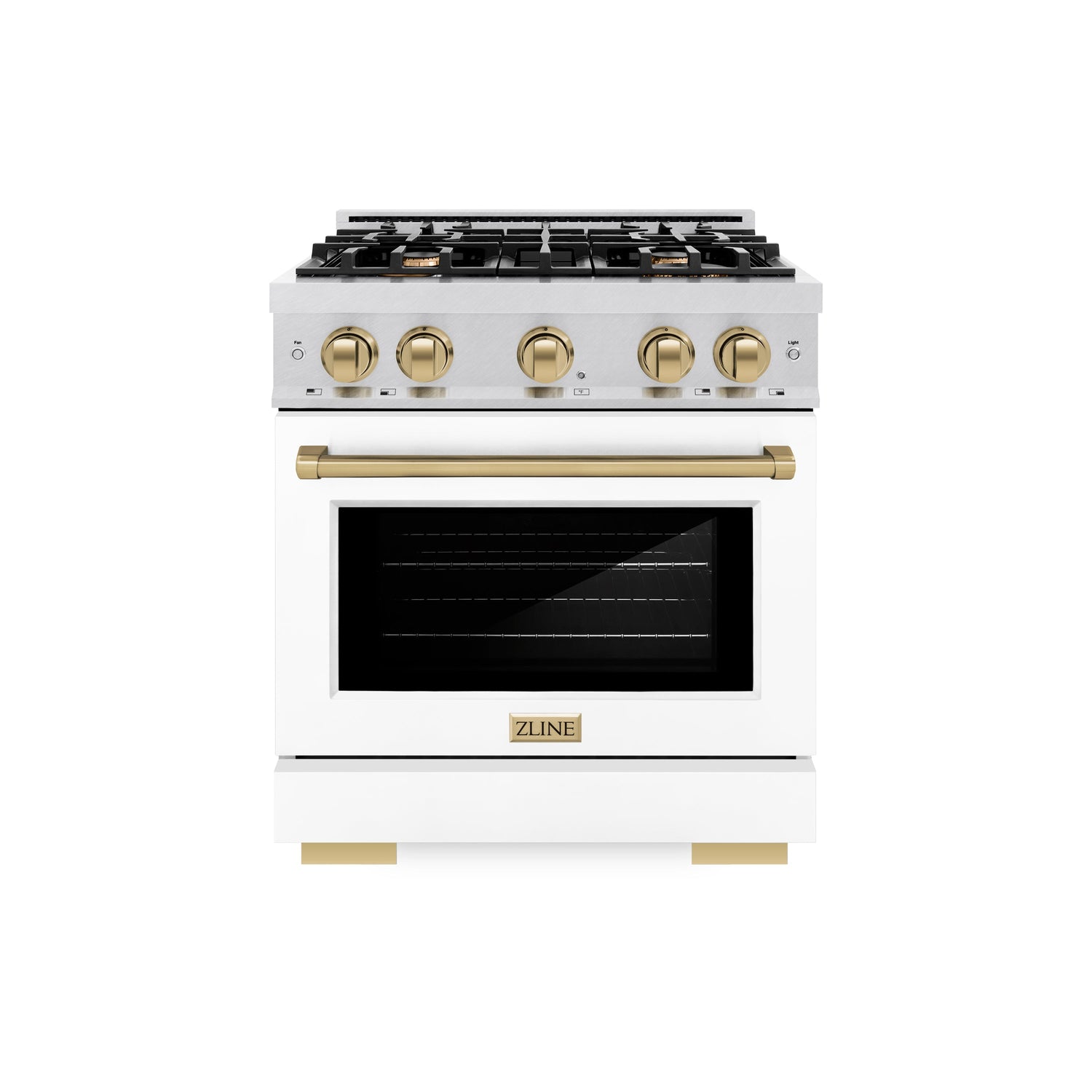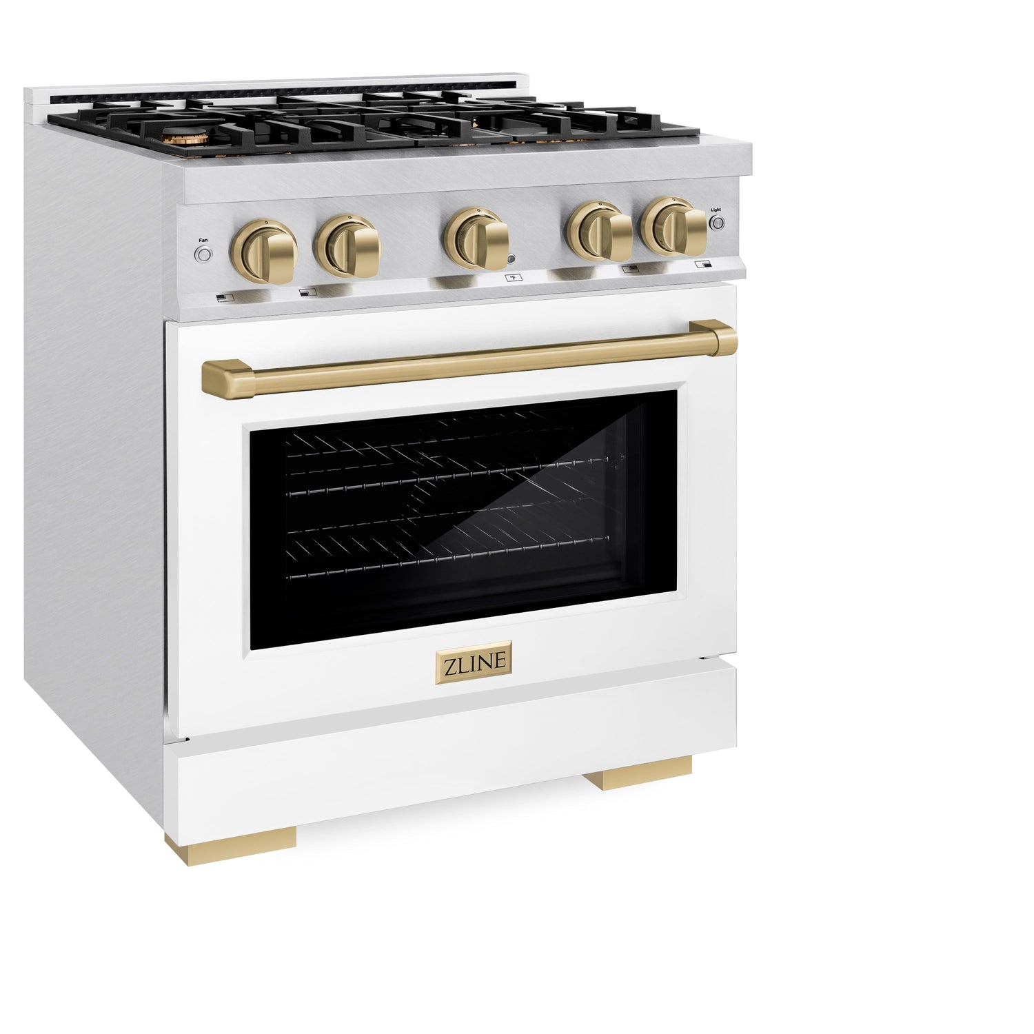 Luxury isn’t meant to be left desired—it’s meant to be attainable. The ZLINE Autograph Edition 30 in. 4.2 cu. ft. Select Gas Range with 4 Burner Cooktop and Convection Gas Oven in Satin Stainless Steel with White Matte Door and Champagne Bronze Accents (HGRSZ-WM-30-CB) combines the elegance of a hand-finished porcelain gas cooktop with 4 Italian-made auto-reignition burners, a gas convection oven with an energy-efficient cooling fan to ensure quiet operation, a beautiful white matte door with a Horizon window design, and stunning champagne bronze knobs and handle allowing you to master every meal. With a modern, timeless style and refined functionality, ZLINE Select Gas Ranges are masterfully crafted to deliver an elevated culinary experience.