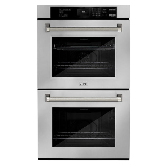 ZLINE Autograph Edition 30 in. Professional True Convection Double Wall Oven with Air Fry and Self Clean in Stainless Steel with Polished Nickel Helix Handles (WADZ-30-KPN)