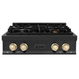 ZLINE Autograph Edition 30" Porcelain Rangetop with 4 Gas Burners in Black Stainless Steel and Polished Gold Accents (RTBZ-30-G)